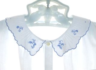 Heirloom White Day Dress with Blue Embroidered CollarLC04145$50.00Size: sold out Vintage Baby Clothes: Vintage DaygownsVintage/HeirloomOnly one available. Not sized but will fit newborn to 6 monthsSize newborn to 6 months is sold out