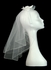 This beautiful veil features a white matte satin headband with an organdy, lace and white satin bow. The bow is centered with a lovely white satin and pearl flower. A double tiered veil is attached.