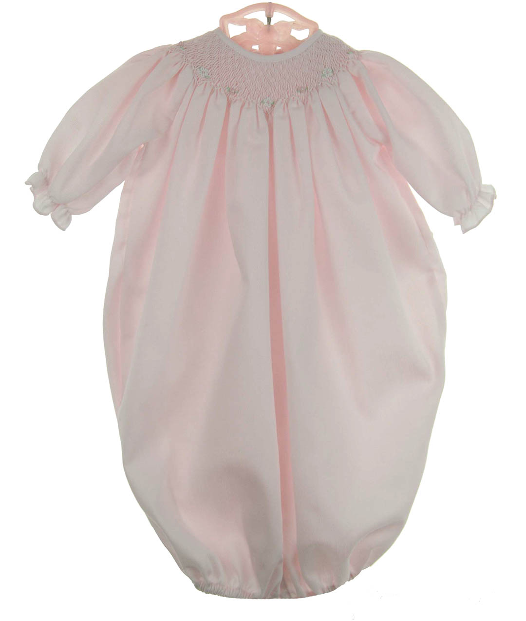 NEW Petit Ami Pink Smocked Gown that Converts to Romper with Matching BonnetLC0941$50.00Size: sold out You may also be interested in:NEW White Socks with Pink Scalloped TrimNEW Petit Ami Pale Pink Mary Jane Style Booties with White TrimNEW Sarah Louise White Blanket with Pink Ribbon InsertionSize preemie is sold outClick an image below to enlarge NEW Petit Ami White Smocked Gown that Converts to Romper with Matching BonnetLC0942$50.00