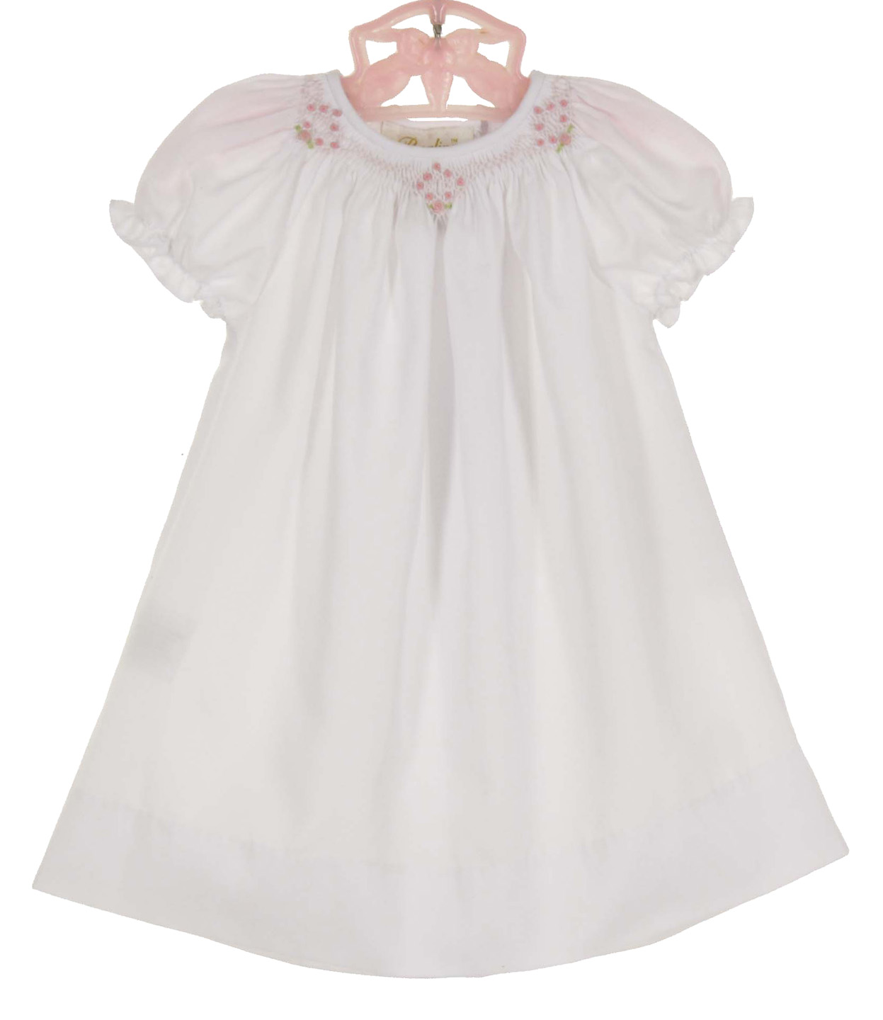 NEW Rosalina White Bishop Smocked Daygown with Embroidered Pink Rosebuds