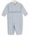NEW Sarah Louise Blue Smocked Romper with Pintucks and White Featherstitching