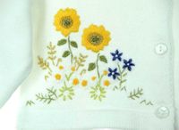 This beautiful new white cardigan sweater is made by Sarah Louise, a leading British designer of beautifully detailed baby clothes for more than 20 years. Made of soft cotton and acrylic blend, it beautifully embroidered yellow, red, and blue floral embroidery on the front and back. Coordinating dress (not included) is also available. See below.