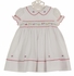 NEW Sarah Louise White Smocked Dress with Red Scalloped Trim and Embroidered Flowers