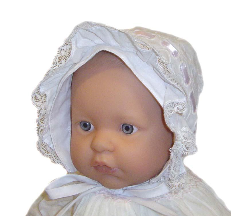 Note: This darling bonnet is also available with white ribbon insertion. See below.