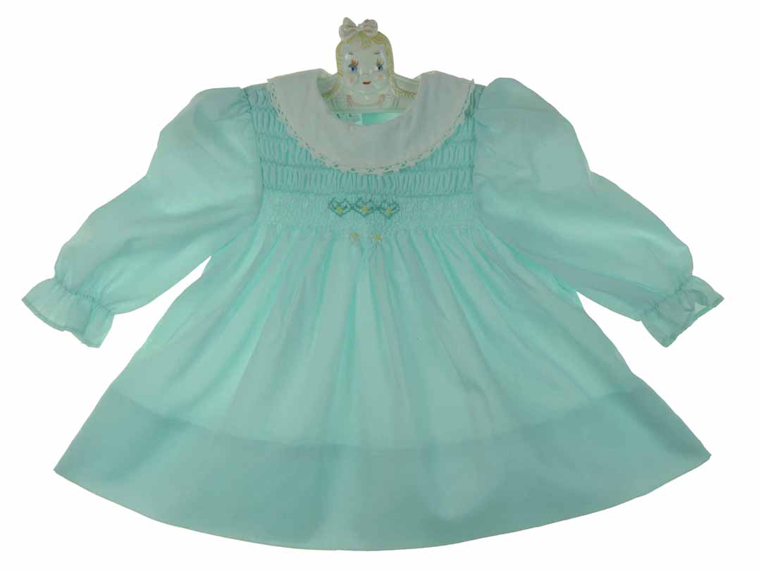 Polly Flinders Aqua Smocked Dress with White Lace Trimmed Collar