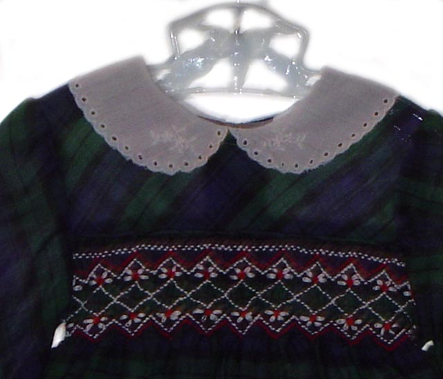 Polly Flinders Navy Plaid Smocked Toddler Dress with White Eyelet Collar