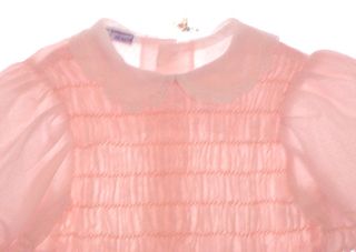 Polly Flinders Pink Dotted Smocked Dress with Lace Collar