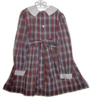Polly Flinders Red and Green Plaid Smocked Little Girls Dress with White Collar