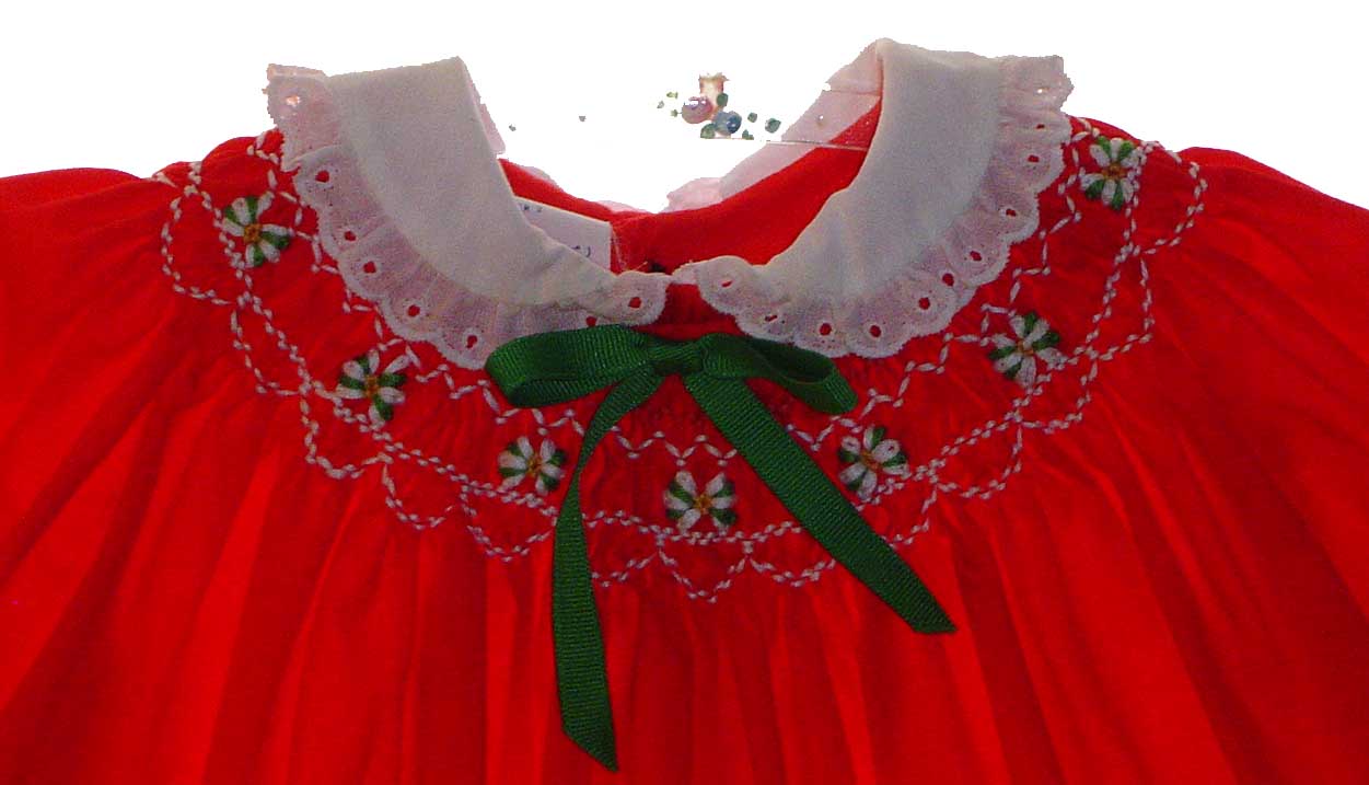 Polly Flinders Red Bishop Smocked Toddler Dress with White Eyelet Trimmed Collar