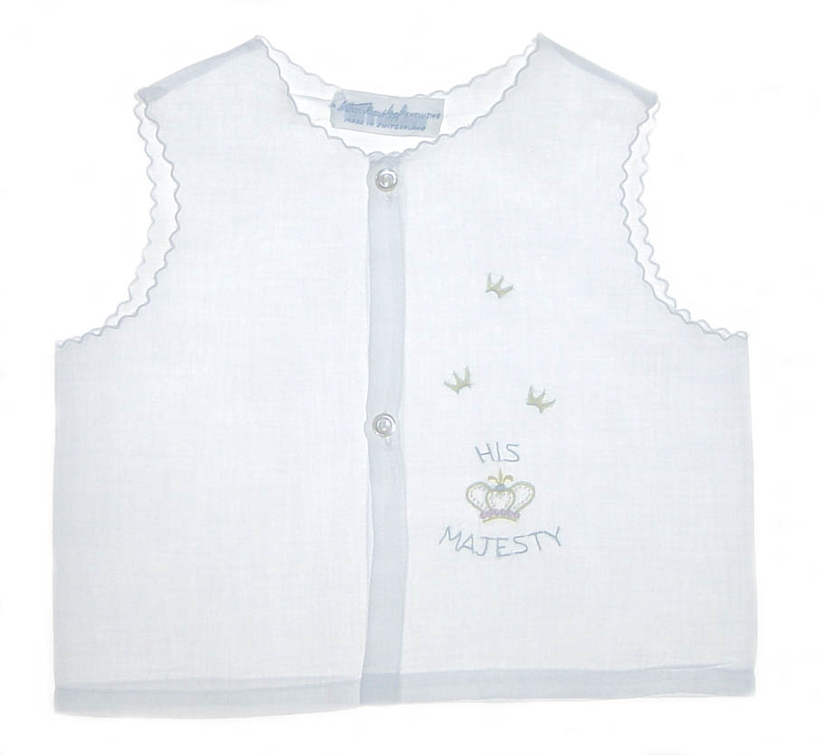 Vintage 1940s Nathan Krauskopf White Swiss Batiste Diaper Shirt Embroidered with His MajestyLC0573$25.00Size: sold out Baby Layettes: Baby Diaper Shirts: Vintage Baby Diaper ShirtsVintage/HeirloomSize newborn to 3 months is sold outSize newborn to 3 months is sold outClick an image below to enlarge