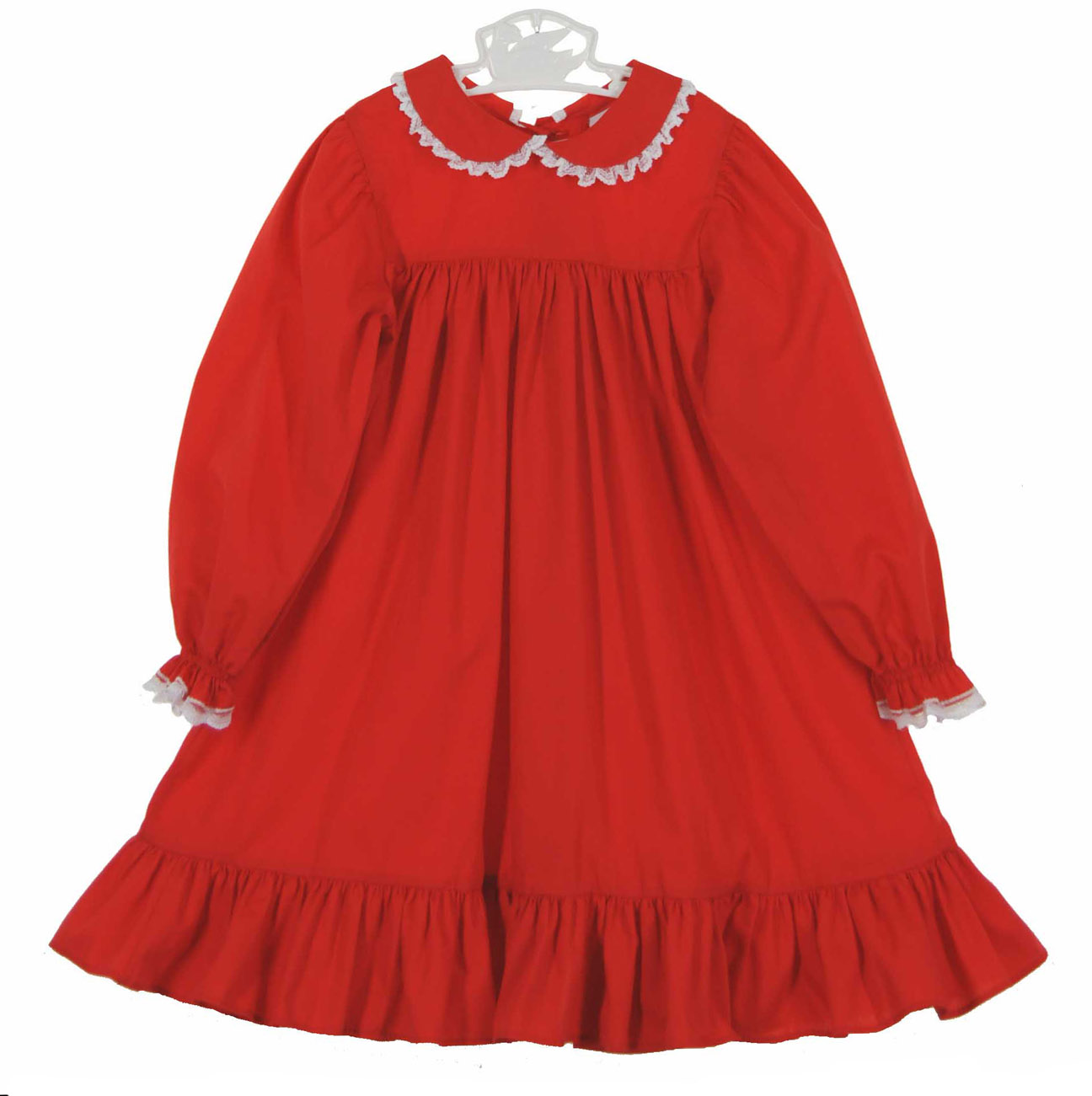 Vintage Bryan Red Dress with White Lace Trimmed Pinafore