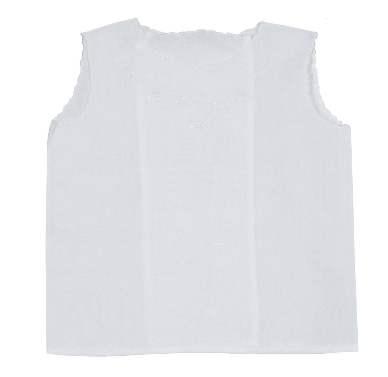 Vintage 1940s Unworn White Linen Embroidered Diaper Shirt with Back Tie