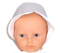 This delicate vintage white cotton blend batiste diaper shirt was machine made in the Philippines in the 1950s. It is made with short puffed sleeves with the tiny collar, yoke, and front placket embroidered with pale pink flowers. Pink scalloped embroidery edges the front opening and hem. The matching little white bonnet has pink embroidered flowers on the brim to sweetly frame baby???s face. It is finished with a closed back and white batiste ties.