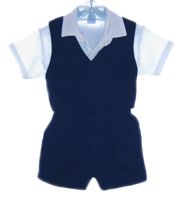 Will'Beth Navy and White Toddler Shorts Set with Vest